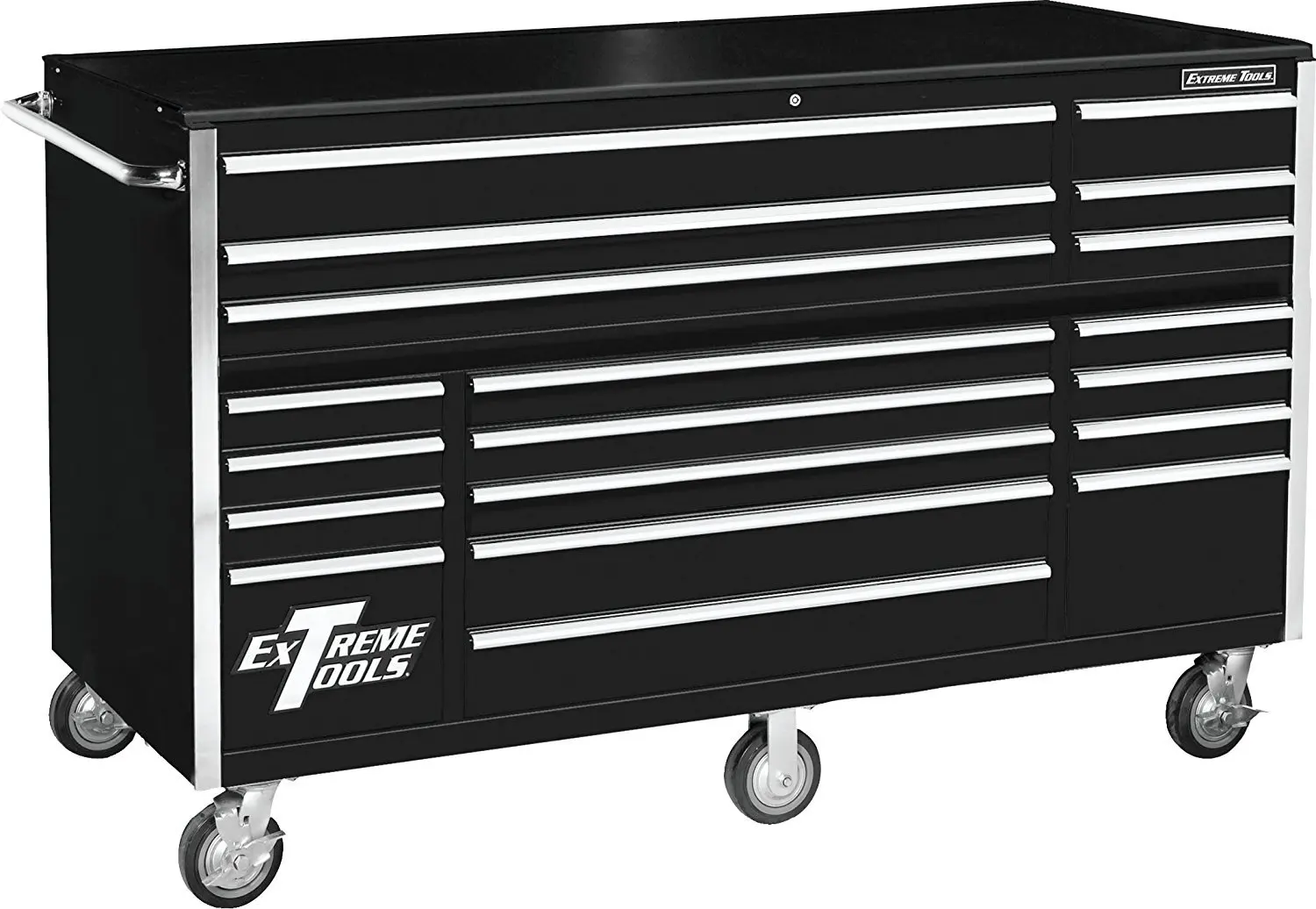 Extreme Tools RX722519RCBK Rx Series 19 Drawer Roller Cabinet with Ball Bearing Slides, 72-Inch, Black High Gloss Powder Coat Finish